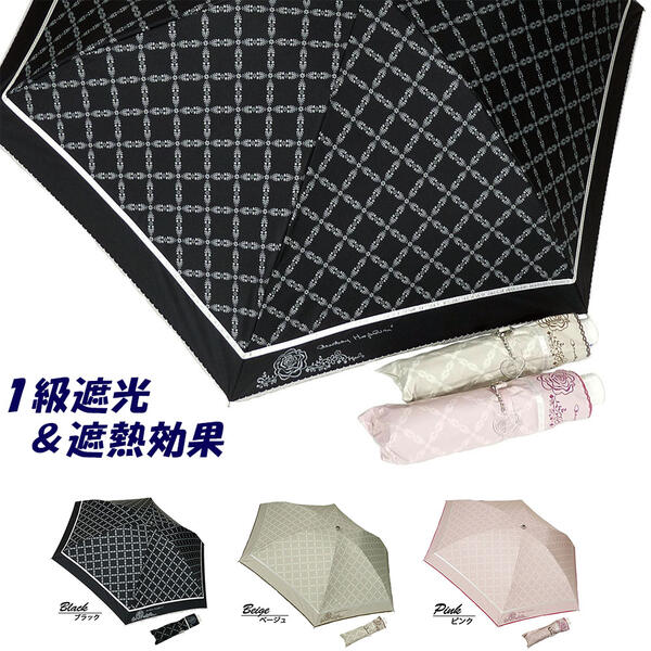 日傘 晴雨兼用傘 1級遮光 UV防止 折りたたみ傘 ミニ傘 3つ折傘 エスニック チェック プリント 雨傘 ワンポイントローズプリント ギフト ラッピング 595202 ブラック ベージュ ピンク