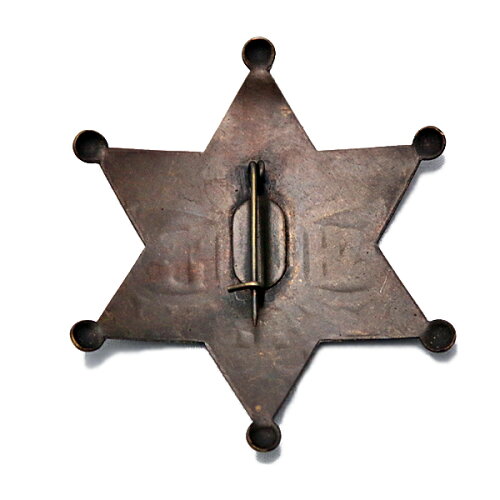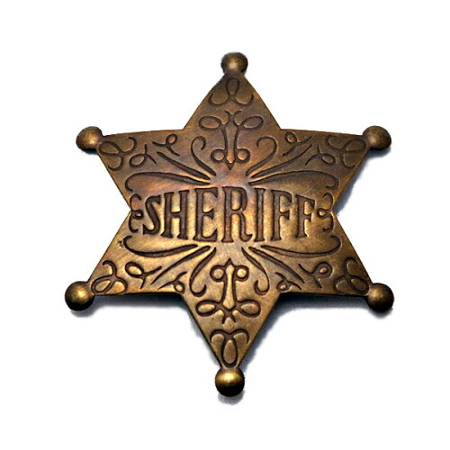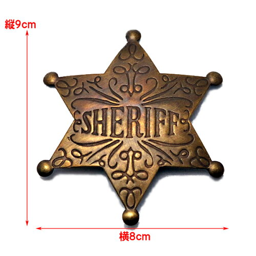 SHERIFF (保安官) スター エンブレム ビンテージ調 メタル バッジ 9cm×8cm ブロンズ ■ 西部 ウエスタン 雑貨 小物 アメリカン コスプレ ハロウィン ハロウィーン