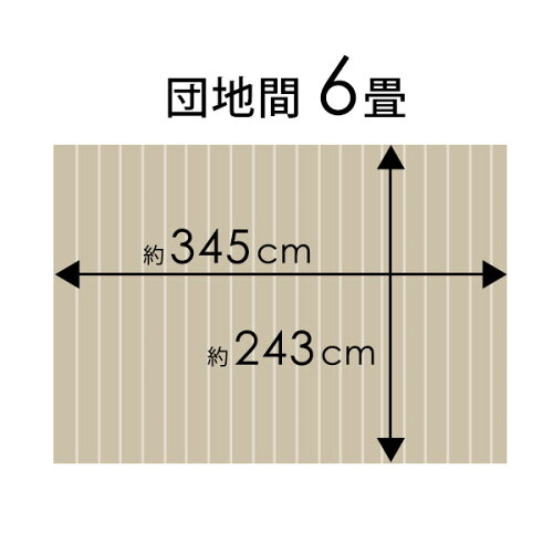【団地間6畳用ウッドカーペット】 ■商品サイズ タテ×ヨコ:約 243×345cm 厚み:約 0.6cm 板幅:約 5cm ■梱包サイズ 約 20×20×251cm ■重量 約 30kg ■素材 表面:コルク 中材:合板 裏面:不織布(フエルトのような素材) ■角タイプ 角丸仕上げ。