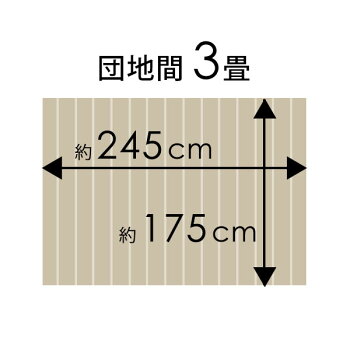 【団地間3畳用ウッドカーペット】 ■商品サイズ タテ×ヨコ:約 175×245cm 厚み:約 0.6cm 板幅:約 5cm ■梱包サイズ 約 19×19×187cm ■重量 約 15kg ■素材 表面:コルク 中材:合板 裏面:不織布(フエルトのような素材) ■角タイプ 角丸仕上げ。