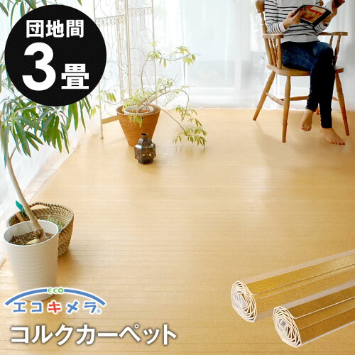 【 1梱包タイプ・あす楽対応品 】【 低ホルマリン 】軽量コルクカーペット 消臭・抗菌シリーズ エコキメラ 団地間3畳用約175×245cm フローリングカーペット コルクマット コルクタイル フローリング材 床 木製 リフォームDIY 3帖