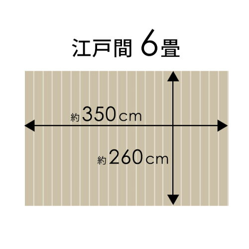 【江戸間6畳用ウッドカーペット】 ■商品サイズ タテ×ヨコ:約 260×350cm 厚み:約 0.6cm 板幅:約 5cm ■梱包サイズ 約 21×21×267cm ■重量 約 30kg ■素材 表面:コルク 中材:合板 裏面:不織布(フエルトのような素材) ■角タイプ 角丸仕上げ。