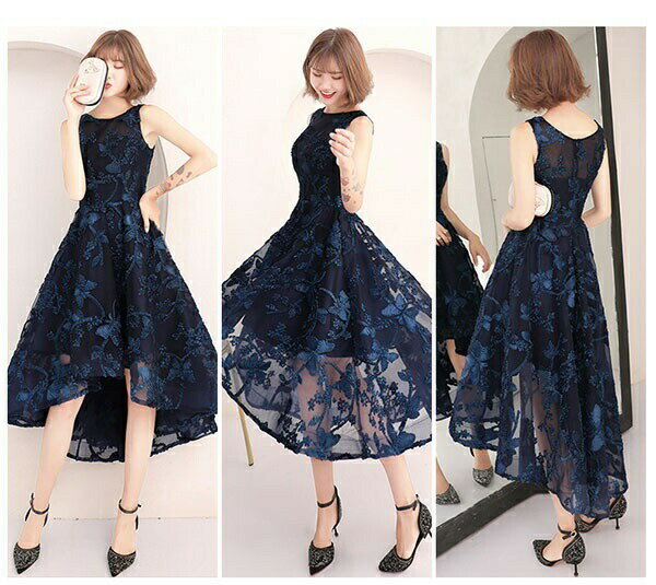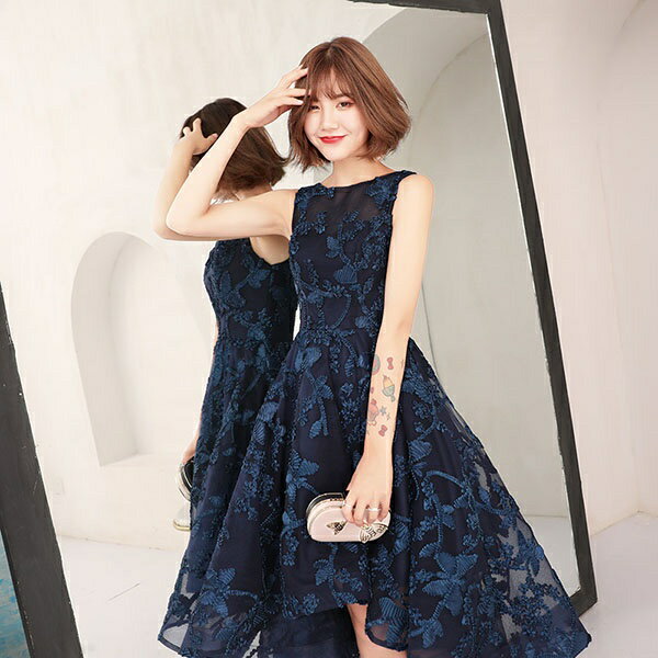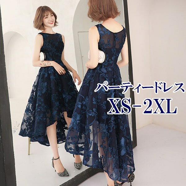 【送料無料】パーティードレス フィッシュテール 結婚式 母親 ドレス 大人 ピアノ 発表会 演奏会用ドレス 大きい お呼ばれドレス 20代 30代 40代 服装 大人 きれいめ ノースリーブ 総レース 同窓会 ネイビー【XS/S/M/L/XL/2XL/3XL】da862s1